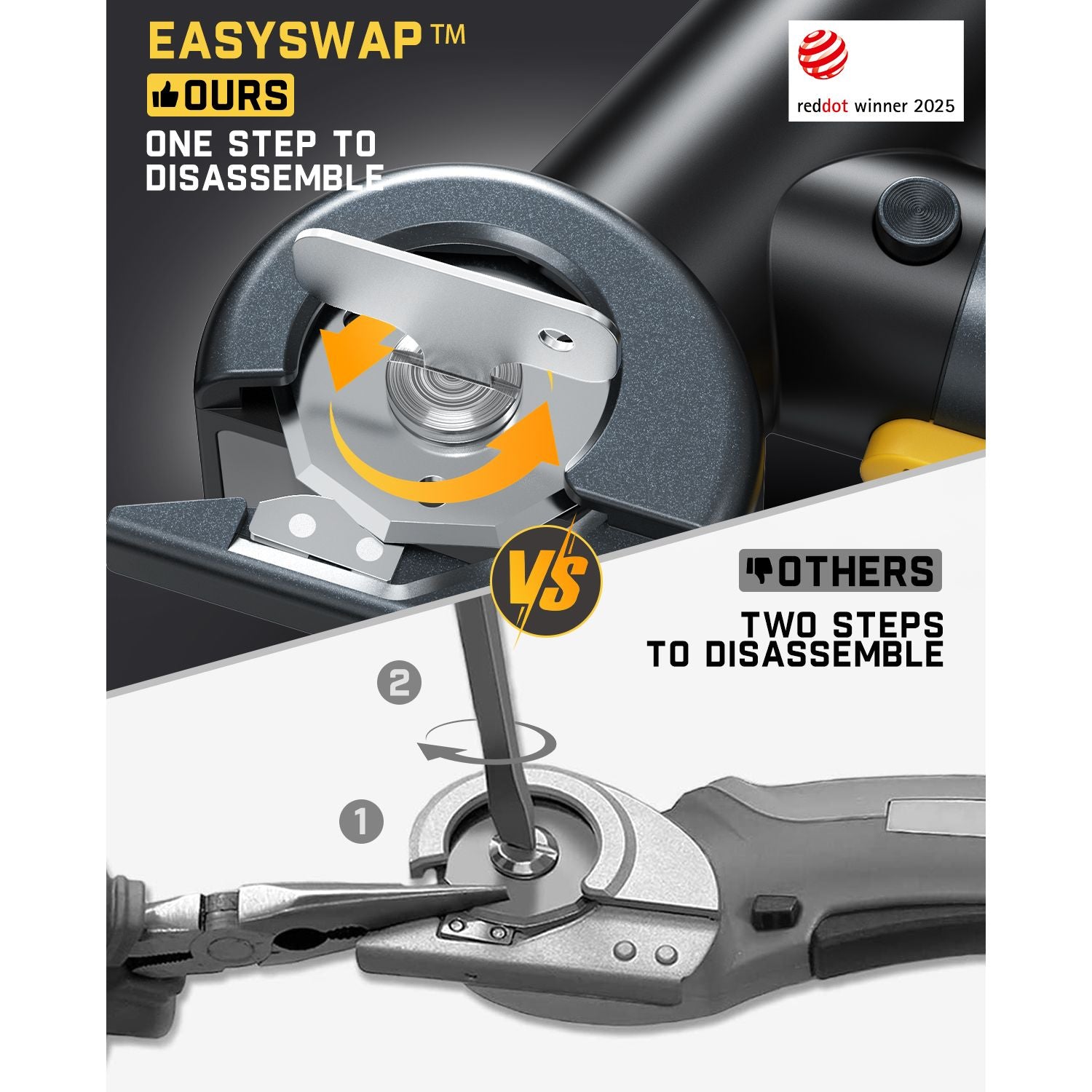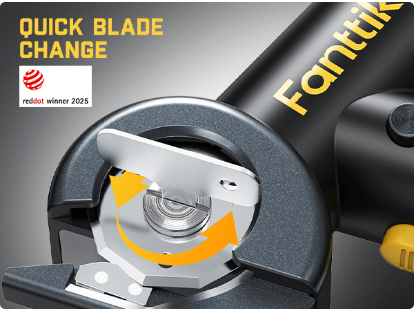 The patented spindle lock mechanism allows one-step blade replacement using the included metal accessory, ensuring safe, tool-free, and hassle-free blade swaps in seconds.