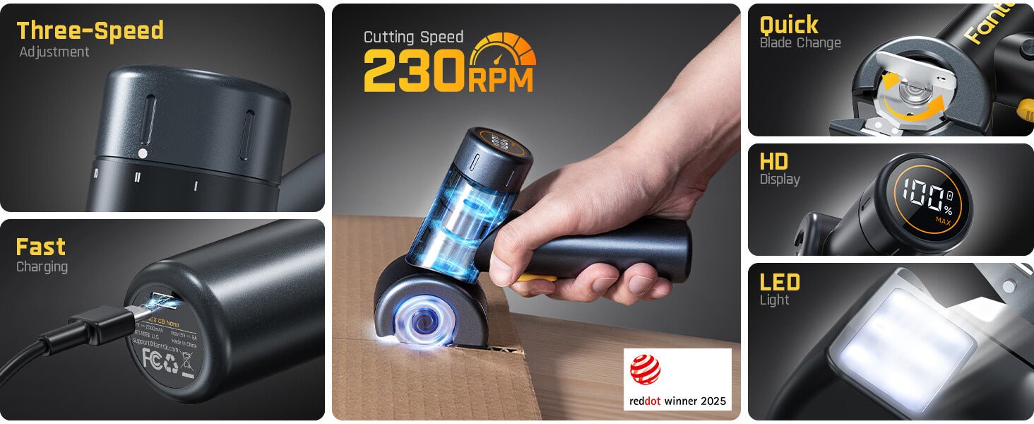 The C8 NANO Electric Scissors offers a maximum cutting depth of 1/4''. It includes 2 blades and is compatible with most blades.
