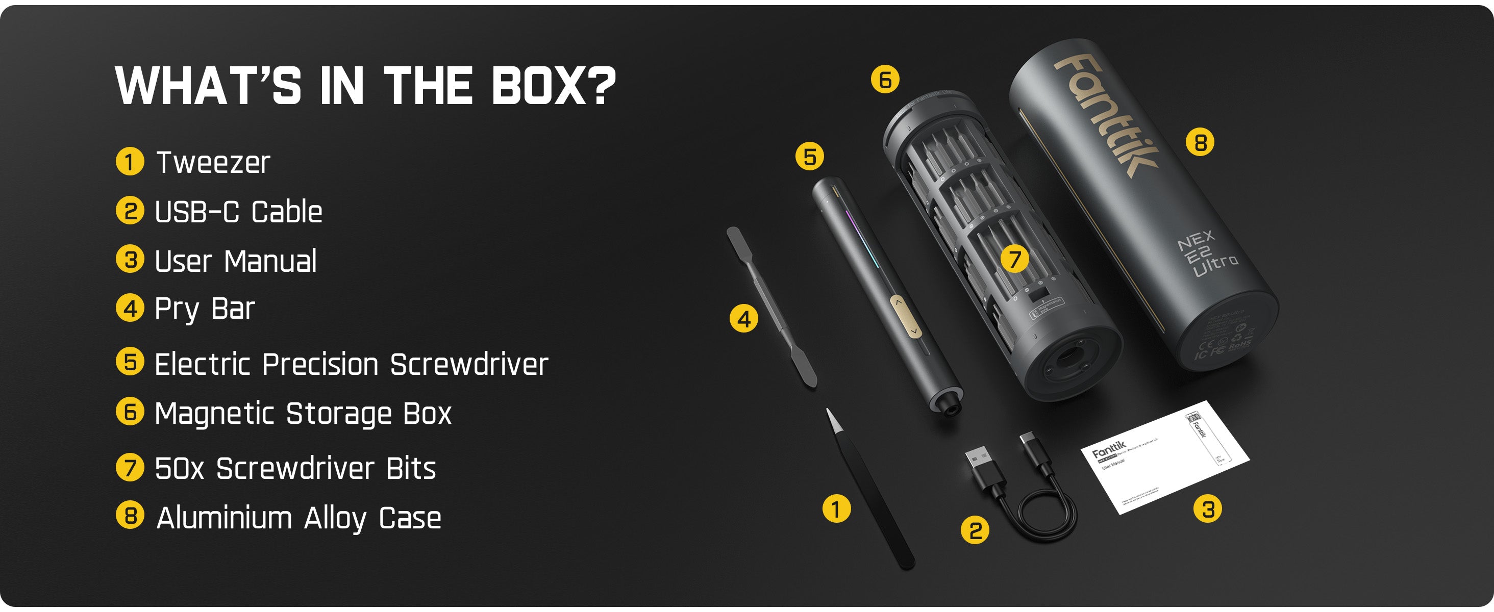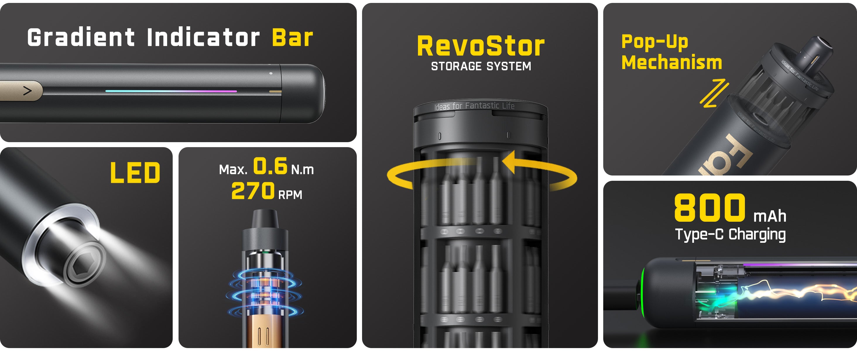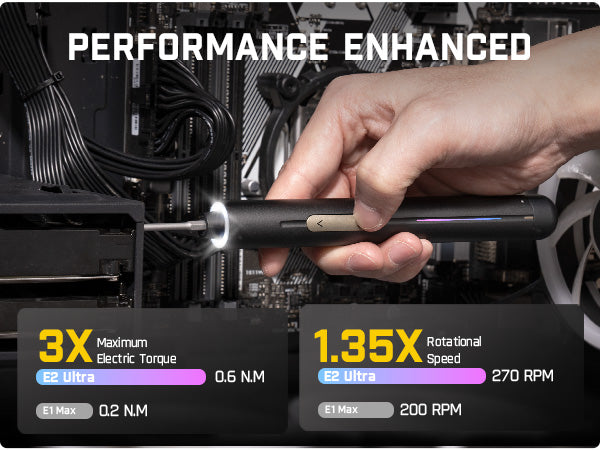 The E2 Ultra uses a 5/32'' Hex Shank and runs at 270RPM with a max torque of 0.6N·m. It’s perfect for small electronics like RC cars, computers, watches, and phones. Use it for precision screws without worry.