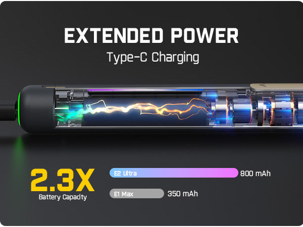 With its 800mAh rechargeable battery, the E2 Ultra can tighten 550 pcs M3.0x10mm screws per fully charge. Note: The device cannot be used while charging as the circuit enters a safety protection mode.