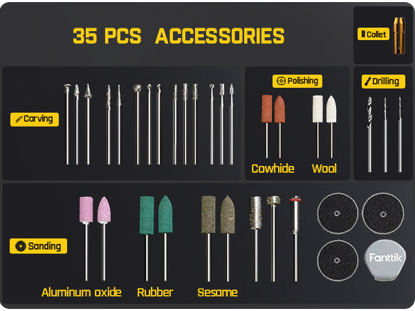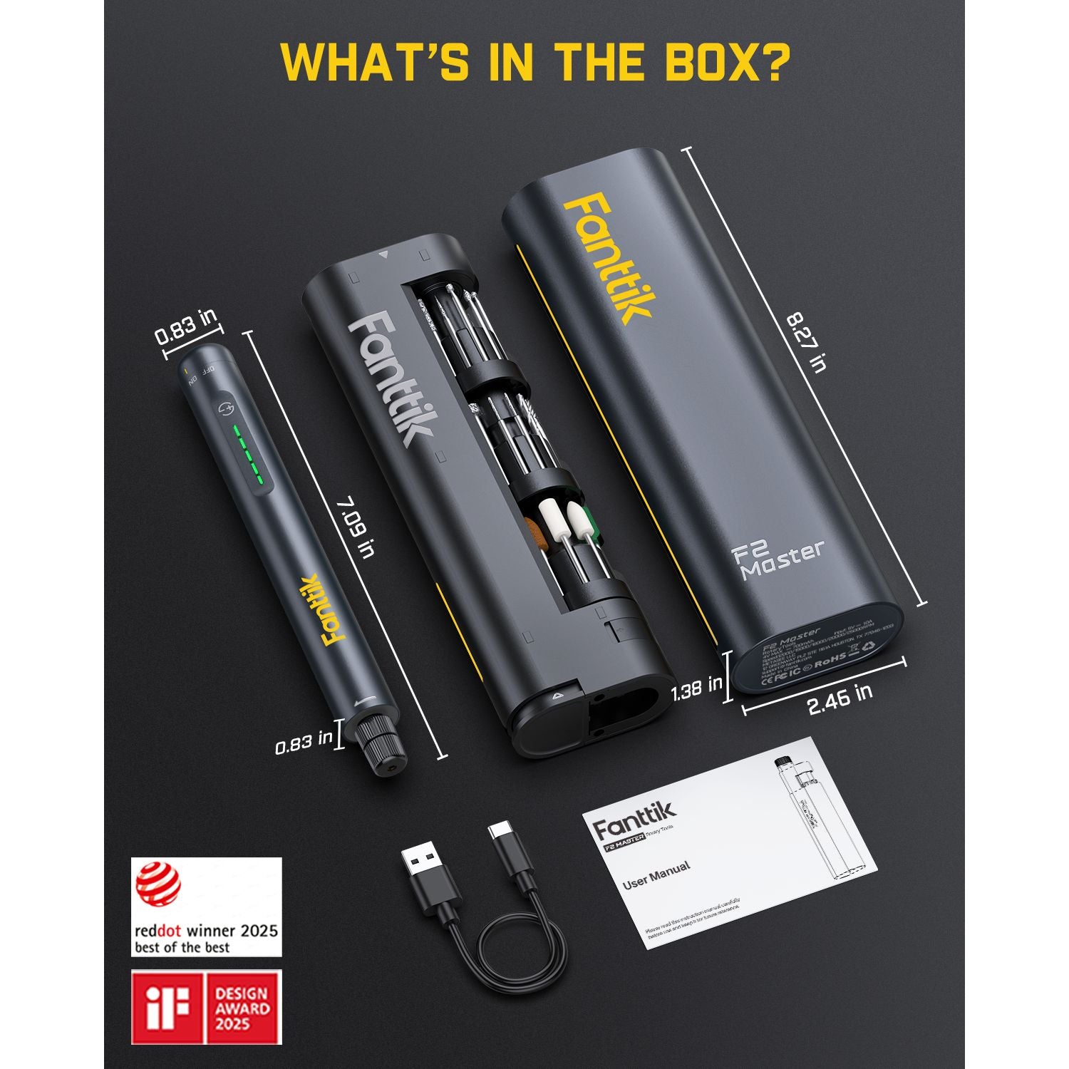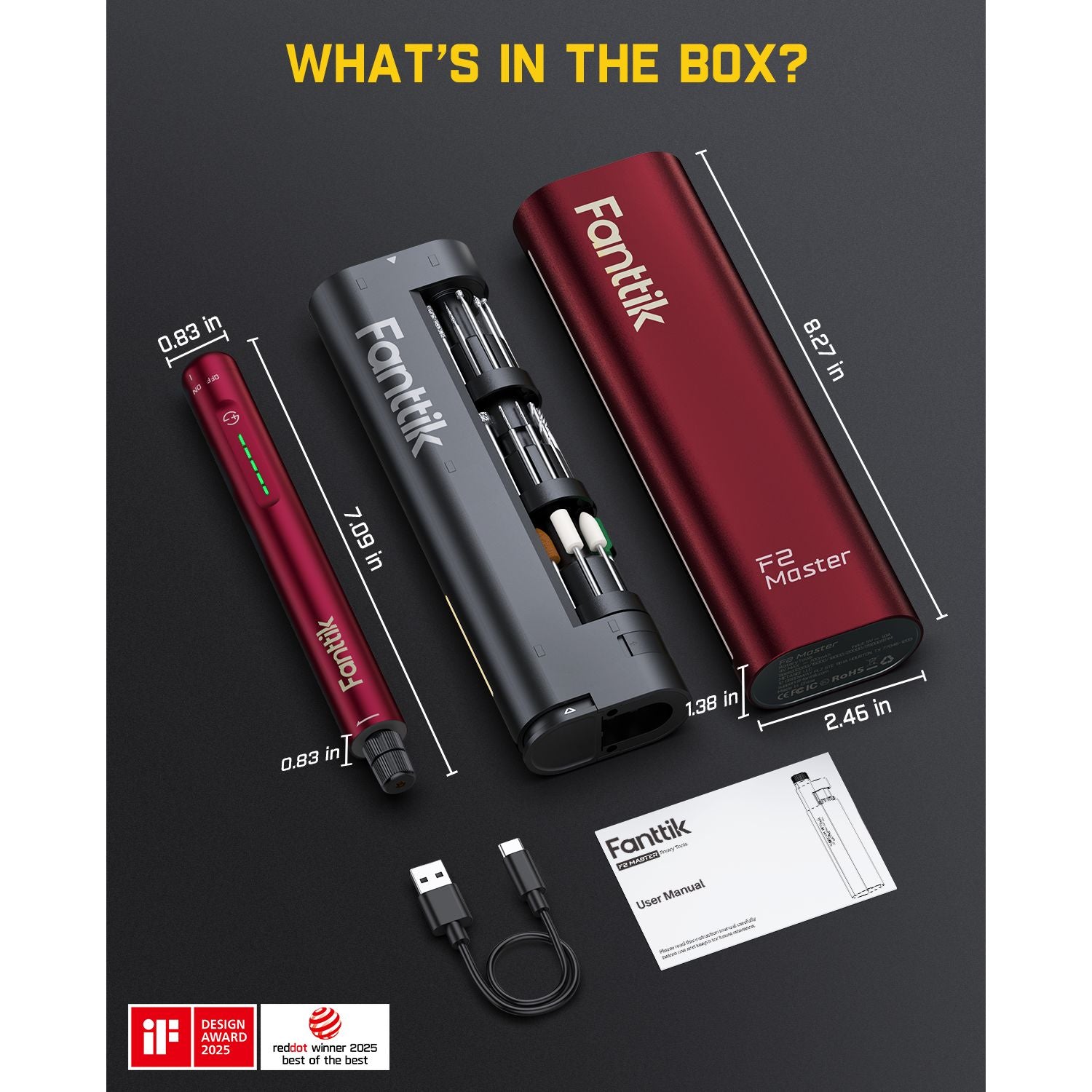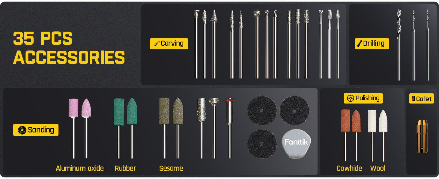 The F2 Master collet fits 3/32" / 2.3mm attachments.You can purchase replacement accessories based on this size. Your kit includes replacement collets, neatly stored in the mini slide-out drawer.
