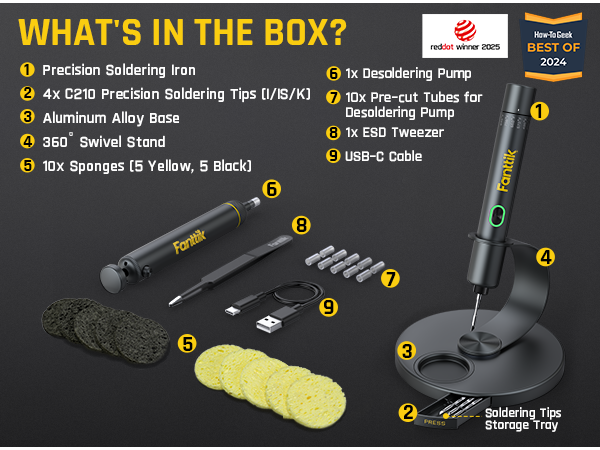 1. The soldering temperature should be 660°F-750°F, depending on the size of the solder point. 2. Use a damp sponge to clean the soldering iron tip before soldering to make sure it is clean and free of impurities.